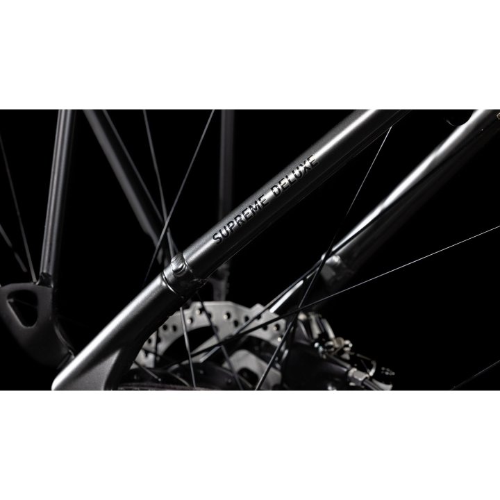 Cadre : Simple, élégant, sûr et pratique : C’est probablement la meilleure façon de décrire le cadre Supreme Hybrid. Grâce au design PowerTube, la batterie Bosch de 625 Wh s’intègre parfaitement, créant un look mince et harmonieux. Le moteur Bosch Active Plus disparaît également pratiquement inaperçu dans le cadre. De plus, ce vélo à accès bas porte bien son nom et permet de monter et descendre du vélo confortablement et rapidement. Pour une précision de direction de premier ordre et une manipulation simple et intuitive, nous avons opté pour un tube de direction conique super stable et sûr. Le cadre a été spécialement conçu pour être utilisé avec un moyeu nécessitant peu d’entretien et comprend un porte-bagages semi-intégré. Mais tout n’est pas pratique : notre procédé de soudage en douceur a été utilisé pour garantir un look authentique et élégant. D’ailleurs, le châssis est disponible dans de nombreuses tailles différentes de 42 à 58 cm – vous êtes donc assuré de trouver la solution qui vous convient.