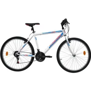 Le VTT 26 » Homme CR/FREERIDER est équipé d’un cadre rigide en acier, d’une fourche rigide, de 18 vitesses via un dérailleur arrière 6 vitesses et un pédalier avant 3 plateaux, de freins V-Brake, de jantes en aluminium avec attache rapide à l’avant, d’une potence plongeur et d’accessoires tels qu’une sonnette, des catadioptres de roues et un éclairage à piles.